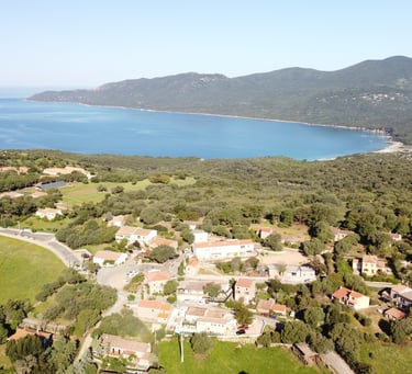 est accessible en voiture ou à pied par le sentier Mare a Mare Sud (1,5 km). Vous y trouverez les commerces et pourrez profiter de la pêche et de tous les sports nautiques : plongée, ski nautique, voile, Canoë kayak, etc.